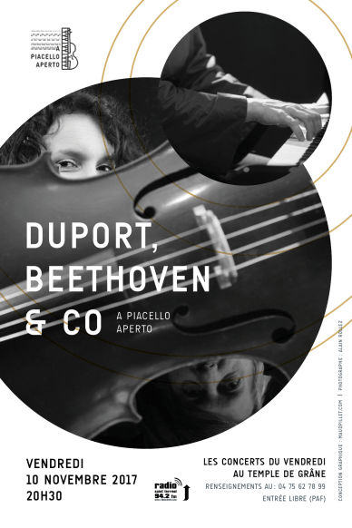 Notre duo A piacello aperto aura la joie de participer aux Concerts du vendredi du Temple de Grâne le 10 novembre prochain à 20h30, dans notre programme Duport, Beethoven & co.
