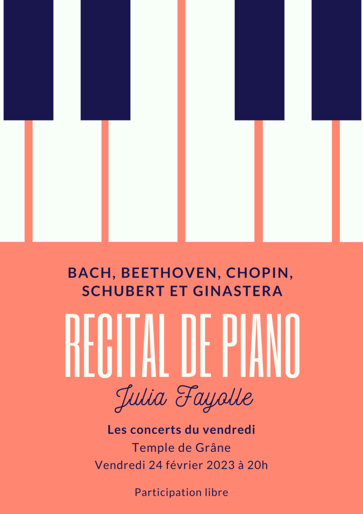 Vendredi 24 février prochain à 20h, j’ai le plaisir d’être invitée à jouer au Concert du vendredi au Temple de Grâne à 20h.